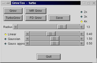 GrowTex Win32 version 000628-2350 Linear TurboGrow radius=16, Lparam=0.50 Synthesis time: 233s internal parameters: SCANLINES=1 SRADIUS=2 |
